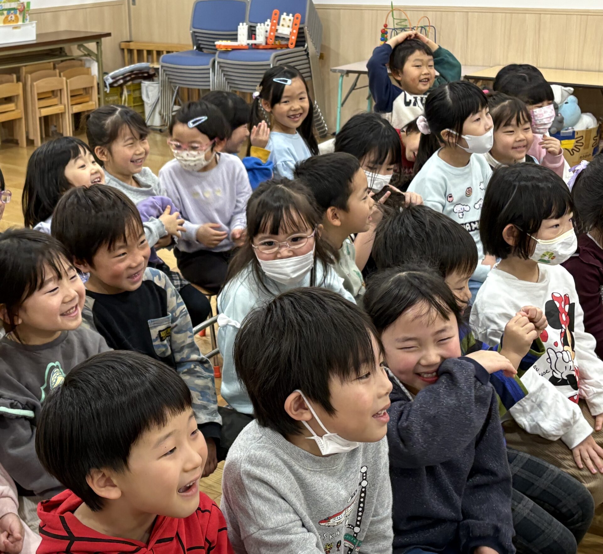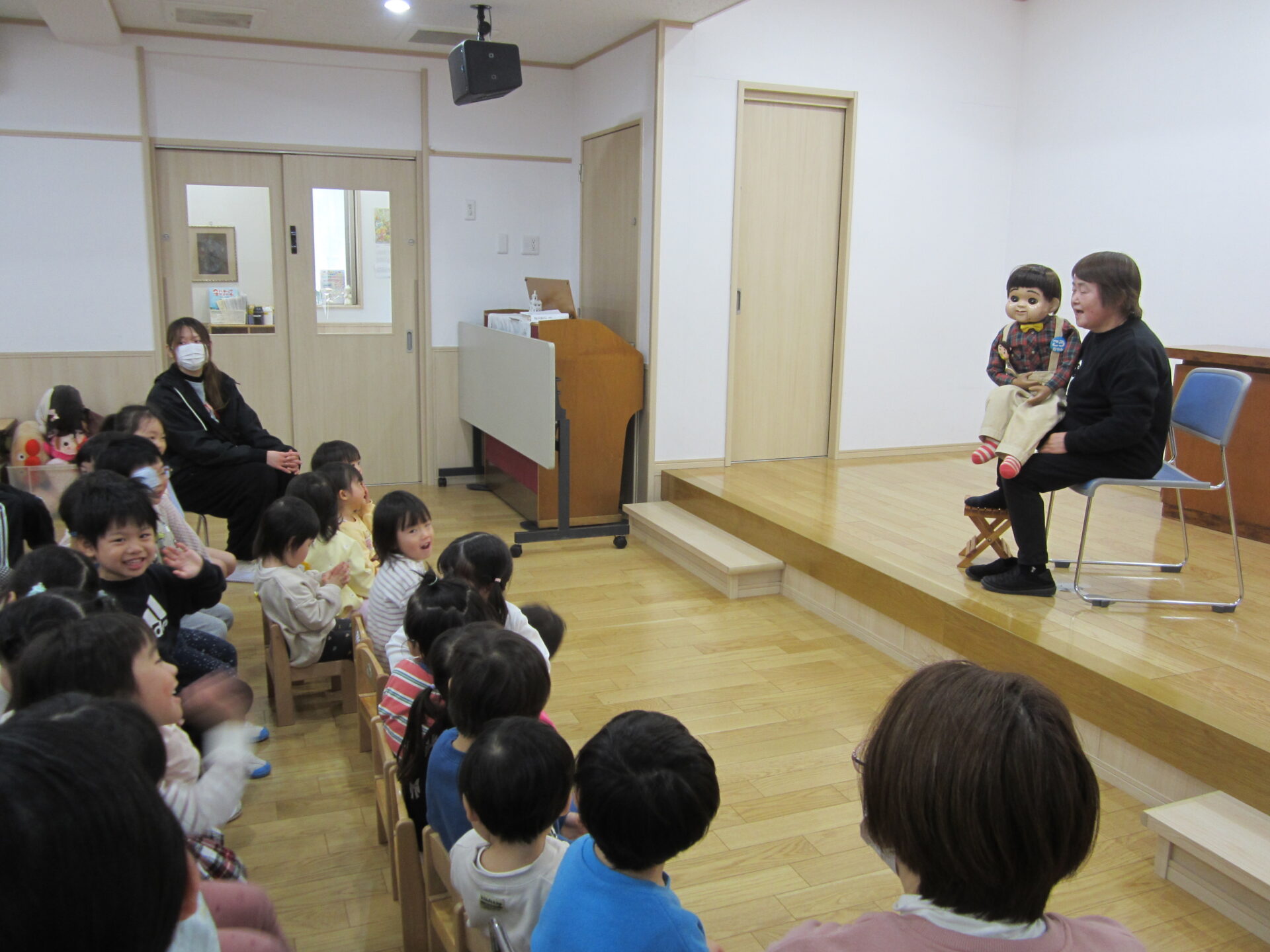 こども園に[春風らっきょさん]が来て下さり 腹話術をしてくださいました。 お人形のさっちゃんとこうちゃんが喋るたびに、 子どもたちの子の笑顔!! とっても楽しい時間を過ごしました。 春風らっきょさん、 どうもありがとうございましたm(__)m