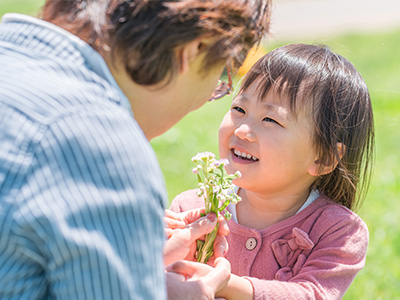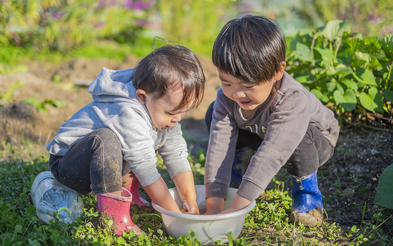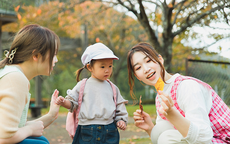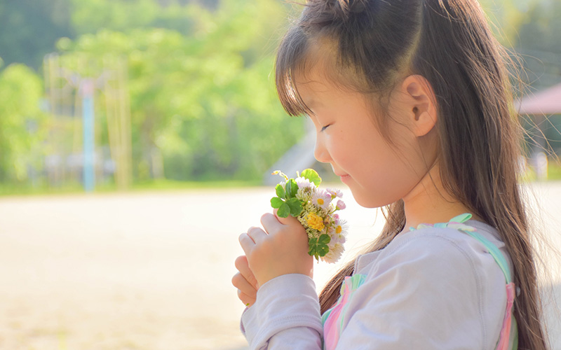 年齢を超えた幼稚園のお友達、美しいもの、命の不思議…いろんな出会いを通し、発見したり、触れたり、感じたりする体験を重ねながら豊かな感性を育てます。