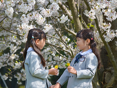 鴻巣英和こども園は、キリスト教保育のもと、一人一人のお友だちを神さまに愛されている大切な人格として尊重し、自主性を重んじる自由保育を展開しています。就学前のこどもたちに必要なことは、愛されていることを知ること、愛することを知ること、友だちと仲良くできること。自分で関心のあることを見いだして、自分で考える事ができること。そして、神さまから一人一人に与えられた、大切な心と体が健やかに成長することです。