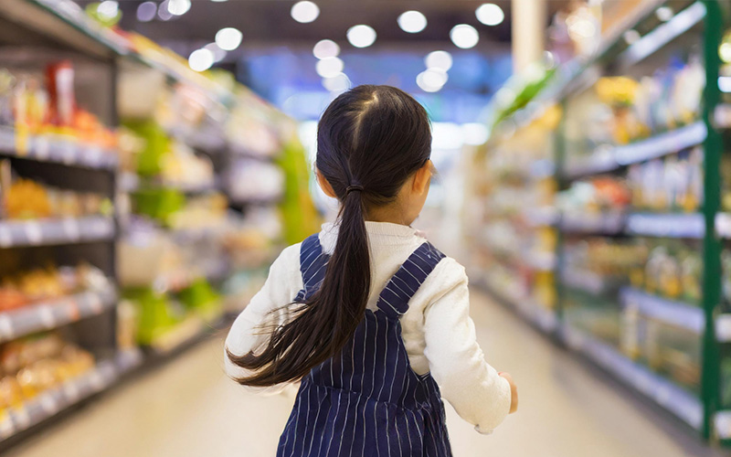 年長さんがグループに分かれて給食の食材の買い物に出かけます。